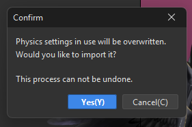 If we import physics settings, it completely overwrites all the existing physics groups in the main file. So there’s no way to “merge” physics from another file without losing what’s already there.